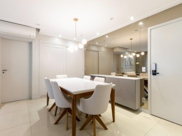 Excelente planta com 03 suítes, todas com ares-condicionados inverter e armários sob medida. O Living para 02 ambientes, também conta com ar-condicionado e aconchegante lareira a gás. Cozinha com despensa e integrada com a sacada gourmet com churrasqueira a carvão. Lavanderia espaçosa com banheiro de serviço. O imóvel possui 2 vagas de garagem e depósito privativo. O condomínio possui lazer completo, com piscina adulto e infantil, churrasqueira, quadra, fitness, playground, brinquedoteca e segurança 24 horas.