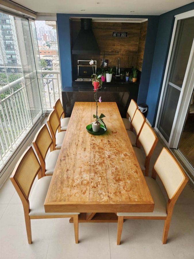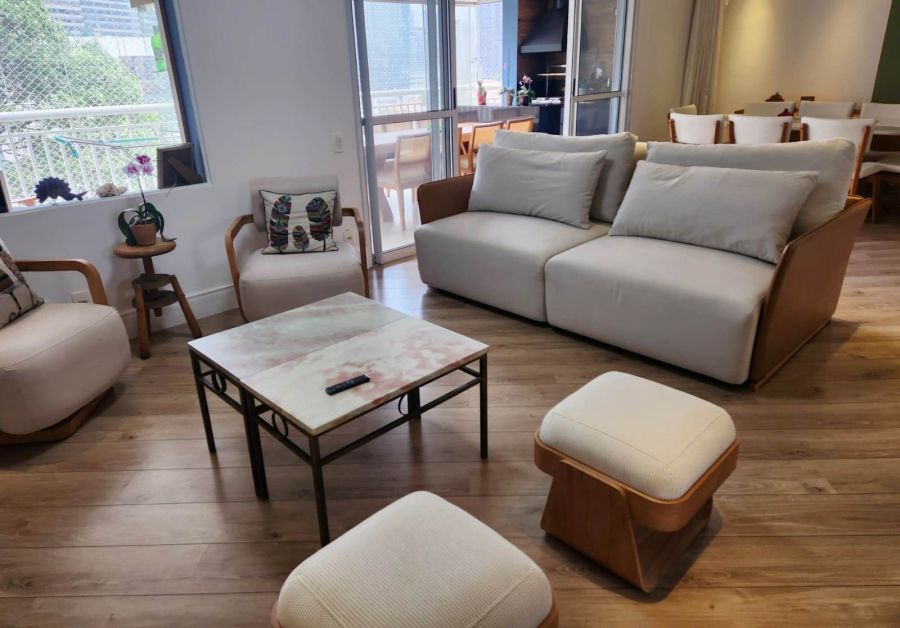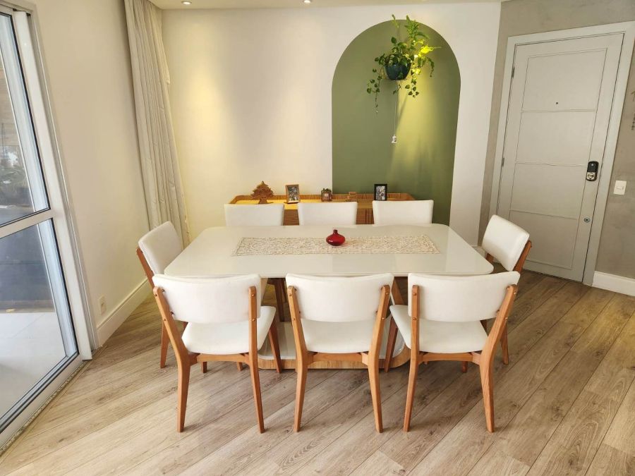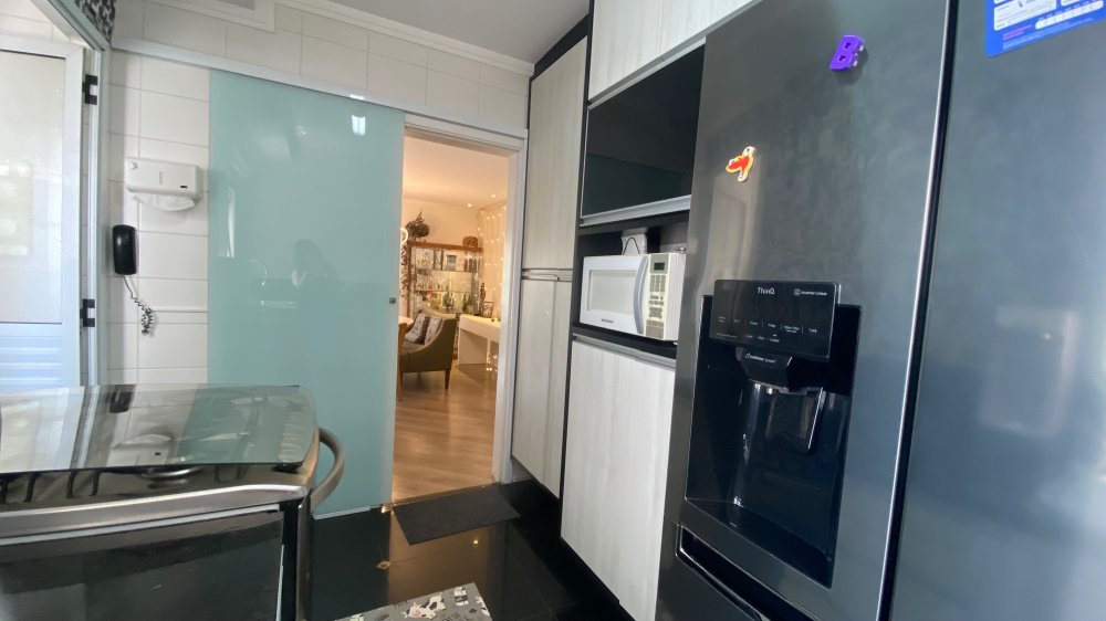 Apartamento moderno e pronto para morar, com living ampliado para 2 ambientes, lavabo e ampla varanda gourmet com churrasqueira, fechamento em vidro e sol da manhã.