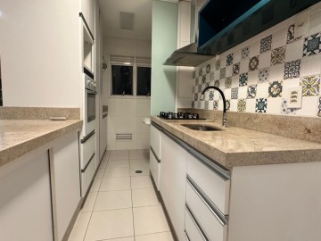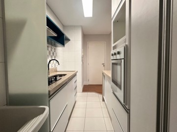 2 dormitórios sendo um suíte; 81m² de área útil; Varanda gourmet com churrasqueira a carvão, sol da manhão e super ensolarado. Sala de estar e jantar; Cozinha com armários, cooktop, forno elétrico e coifa; Área de serviço; Banheiro social e 1 vaga de garagem.