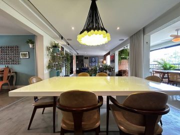 Living para dois ou mais ambientes; amplo terraço gourmet com churrasqueira e vista incrível e permanente para um bosque, repleto de árvores. A planta é excepcional com escritório e 3 suítes sendo máster com closet e banheira o janelão com vista para as árvores é o diferencial deste quarto, iluminando o ambiente por completo. Cozinha extremamente ampla e espaçosa, área de serviço com com lavanderia, dependência de serviços e despensa. O imóvel conta ainda com depósito privativo e 4 vagas de garagem. Condomínio diferenciado, estilo europeu com poucos andares e ótima infraestrutura de lazer para toda a família.