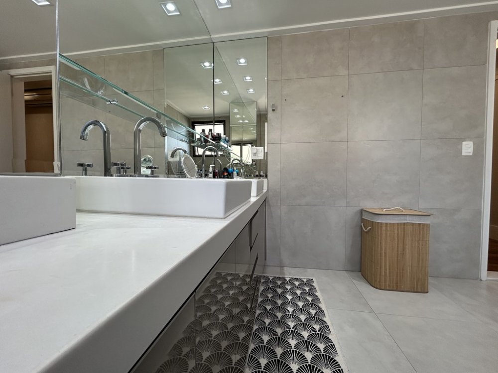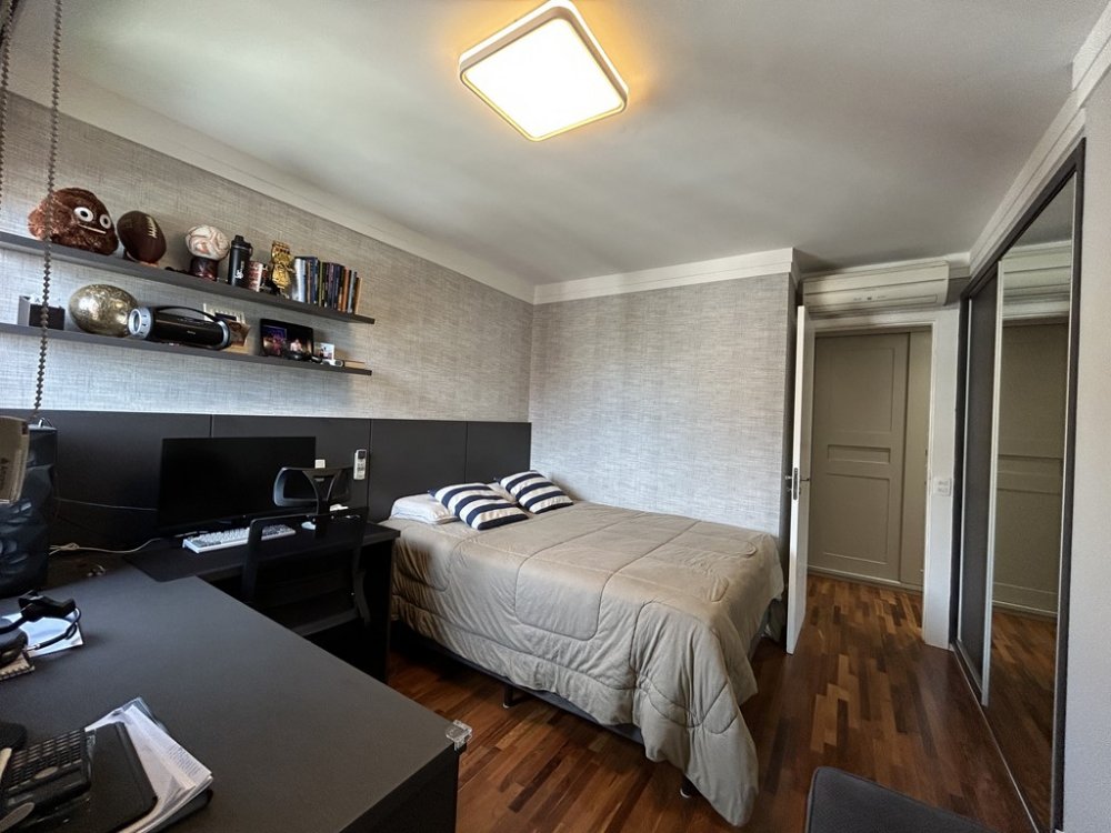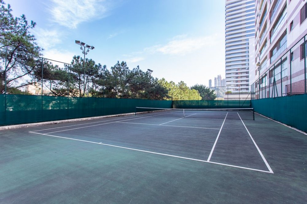 O imóvel possui sala de TV e 3 suítes super espaçosas, a máster conta ainda com closet. Cozinha com copa e repleta de armários, ampla lavanderia com despensa, banheiro de serviço e terraço técnico. O imóvel possui 3 vagas de garagem e depósito privativo. Condomínio com lazer de clube e assessoramento esportivo, com piscina adulto e infantil, coberta e aquecida e descoberta climatizada. Sauna, sala de massagem, sala de ginástica e lutas, academia com instrutor, salão de festas, salão de jogos, brinquedoteca, sala de estudos, sala de artes, quadras de tênis, quadra gramada e poliesportiva.