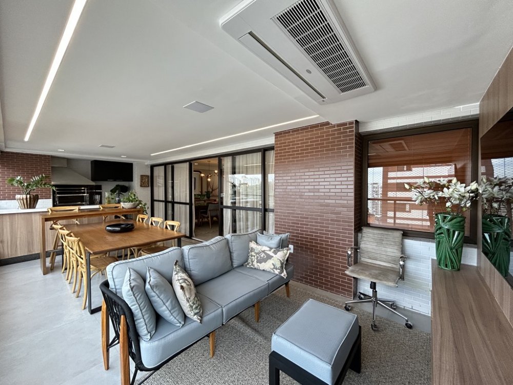 O apartamento foi totalmente reformado e possui ar-condicionado em todos os ambientes. Living ampliado para 2 ou mais ambientes e integrado ao terraço gourmet, envidraçado e com churrasqueira. Um espaço delicioso para receber amigos e familiares.
