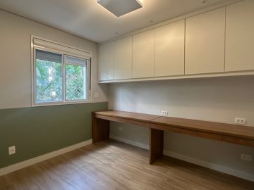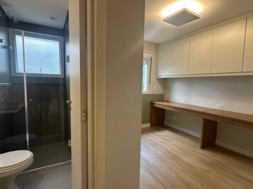 O imóvel possui lavanderia com banheiro de serviço, despensa, 2 vagas de garagem e depósito privativo. O condomínio, em estilo europeu com poucos andares, oferece lazer completo e está cercado pelos bosques da região, trazendo tranquilidade e qualidade de vida em um dos endereços mais desejados da cidade.