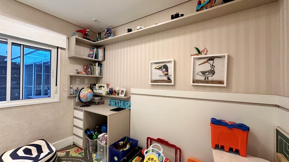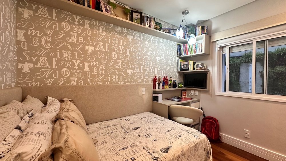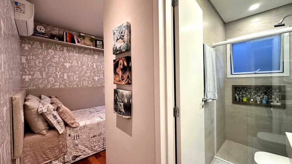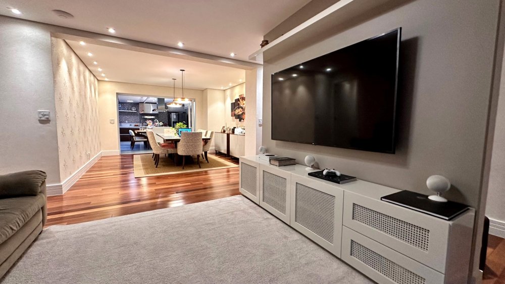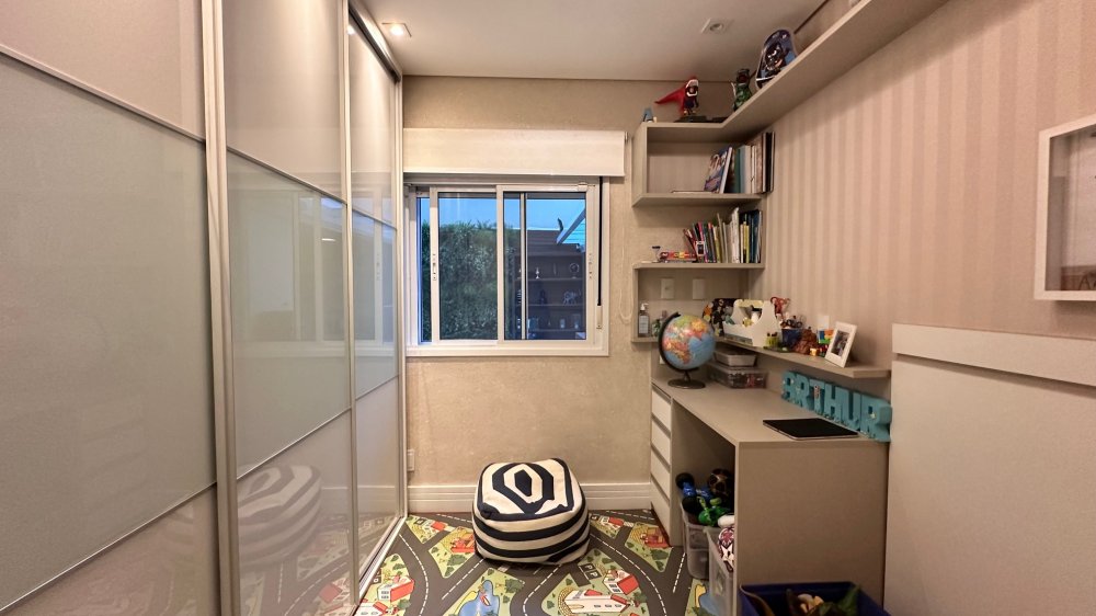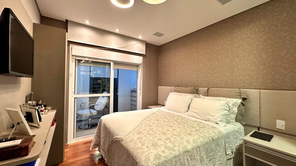 Excelente planta com 4 dormitórios, sendo 3 suítes. A suíte máster conta com closet, vista para o verde, com um espaço super agradável para massagem e maquiagem. Ar-condicionado em todos os ambientes; espaço gourmet com churrasqueira da Tuboar, torre forno com aparelhos da Tecno e adega foi feita sob medida para o apartamento, tudo de primeiríssima qualidade. A área externa possuí uma ampla área verde com banheira de hidromassagem, completamente privativa, lareira à gás, jardim e horta. 3 vagas de garagem e depósito privativo. Condomínio estilo europeu com andares baixos e totalmente arborizado. Infraestrutura de lazer para todas as idades.