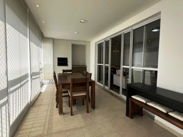Andar alto, sol da manhã,varanda gourmet com churrasqueira e fechamento em vidros retráteis.