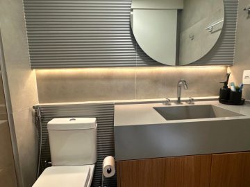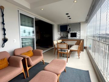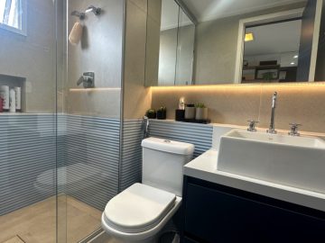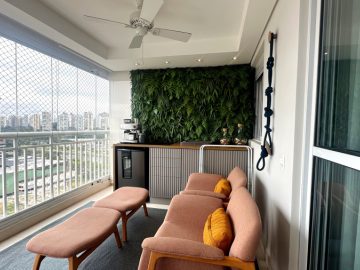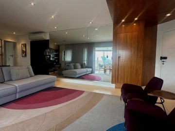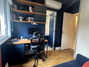 O apartamento possui ar-condicionado em todos os ambientes e marcenaria de excelente qualidade, agregando praticidade e sofisticação.
