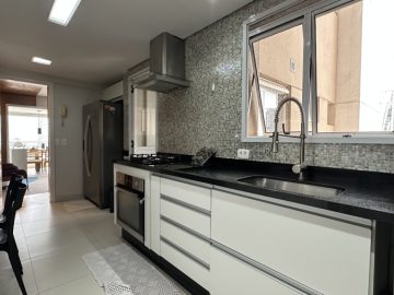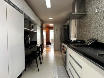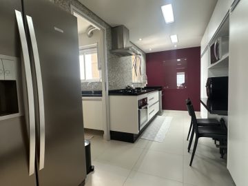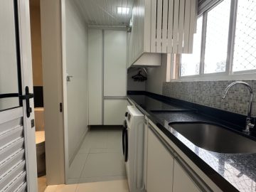 A cozinha é totalmente equipada, assim como a lavanderia, e o imóvel ainda conta com banheiro de serviço.