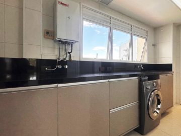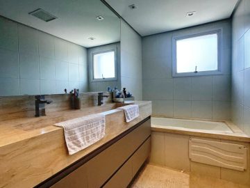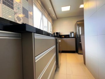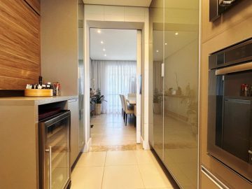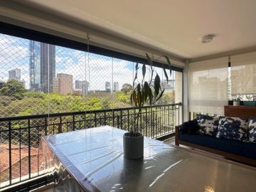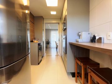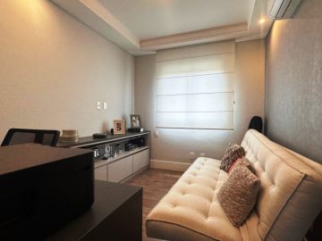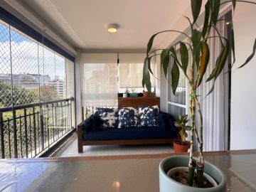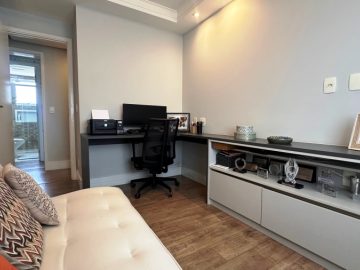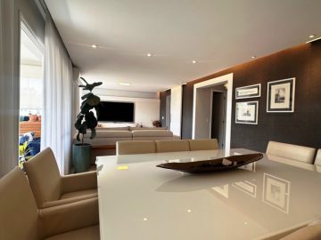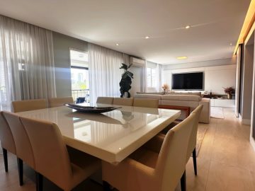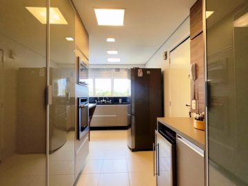 Living integrado à varanda gourmet com churrasqueira e vista permanente para o verde, ideal para receber seus amigos e familiares com charme e conforto. Excelente planta com três suítes, mais um escritório, todos os ambientes contam com ar-condicionado e marcenaria de alto padrão. Cozinha e lavanderia repletas de armários e com passagem interna que se conecta diretamente à área íntima. O imóvel conta ainda com 3 vagas de garagem e depósito privativo.