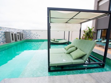 O prédio possui piscina com deck molhado no rooftop, fitness, coworking, sala de cinema, churrasqueira, salão de festas, lavanderia coletiva, praça de convivência, espaço pet, etc