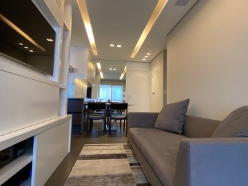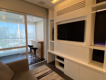 Apartamento para locação, completamente reformado, mobiliado e decorado. Armários Kitchen, piso Portobello, todos os armários feitos por marcenaria de renome; ar condicionado em todos os ambientes, pia da cozinha em Limestone e dos banheiros em mármore, churrasqueira em aço inox. Andar alto e vista livre. 2 dormitórios sendo um suíte com som ambiente, TV e cama recém adquirida. O segundo quarto pode ser usado com escritório ou dormitório. 2 vagas de garagem.