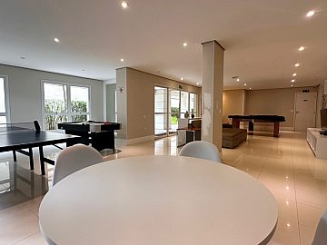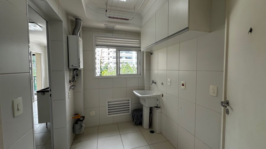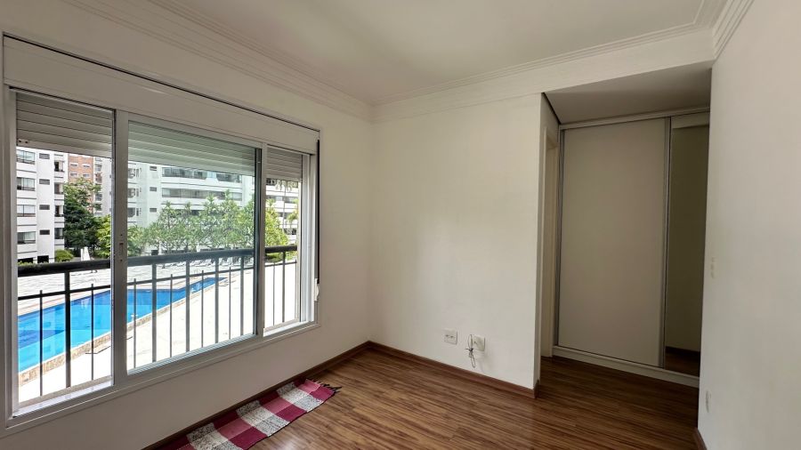 O imóvel possui lavanderia com banheiro de serviço, 2 vagas de garagem e depósito privativo. O condomínio, em estilo europeu com poucos andares, oferece lazer completo e está cercado pelos bosques da região, trazendo tranquilidade e qualidade de vida em um dos endereços mais desejados da cidade.