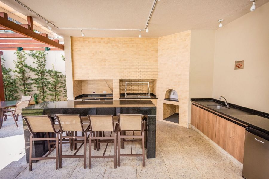 Espaço gourmet + churrasqueira com forno de pizza