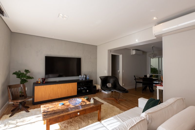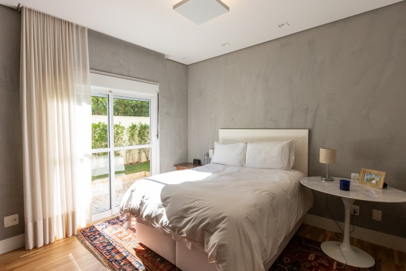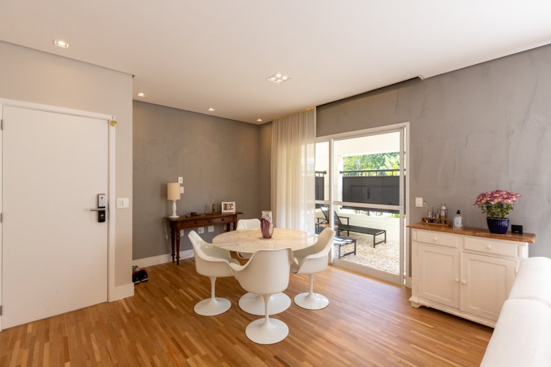 A área externa possui quintal gramado, chuveiro e deck com jacuzzi. O apartamento possui quatro dormitórios, sendo dois suítes, a máster com closet e banheiro com duas cubas e hidro.