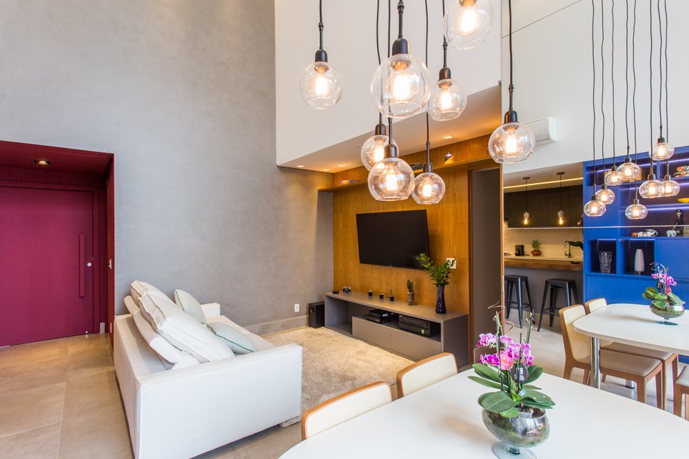 Living com pé direto duplo apartamento, decorado por arquiteta, totalmente mobiliado com móveis em tons de branco, preto, cinza e vermelho e na cozinha, eletrodomésticos em aço inox. Planta com 1 suíte (com varanda) + 2 dormitórios, amplos e iluminados; Varanda gourmet com churrasqueira. Acabamentos diferenciados em todos os ambientes. Edifício moderno com piscina aquecida coberta e descoberta, bosque com arvores nativas, churrasqueira com forno de pizza; sala de ginástica totalmente equipada; espaço gourmet adulto e teen e mais uma série de itens. Localização privilegiada.